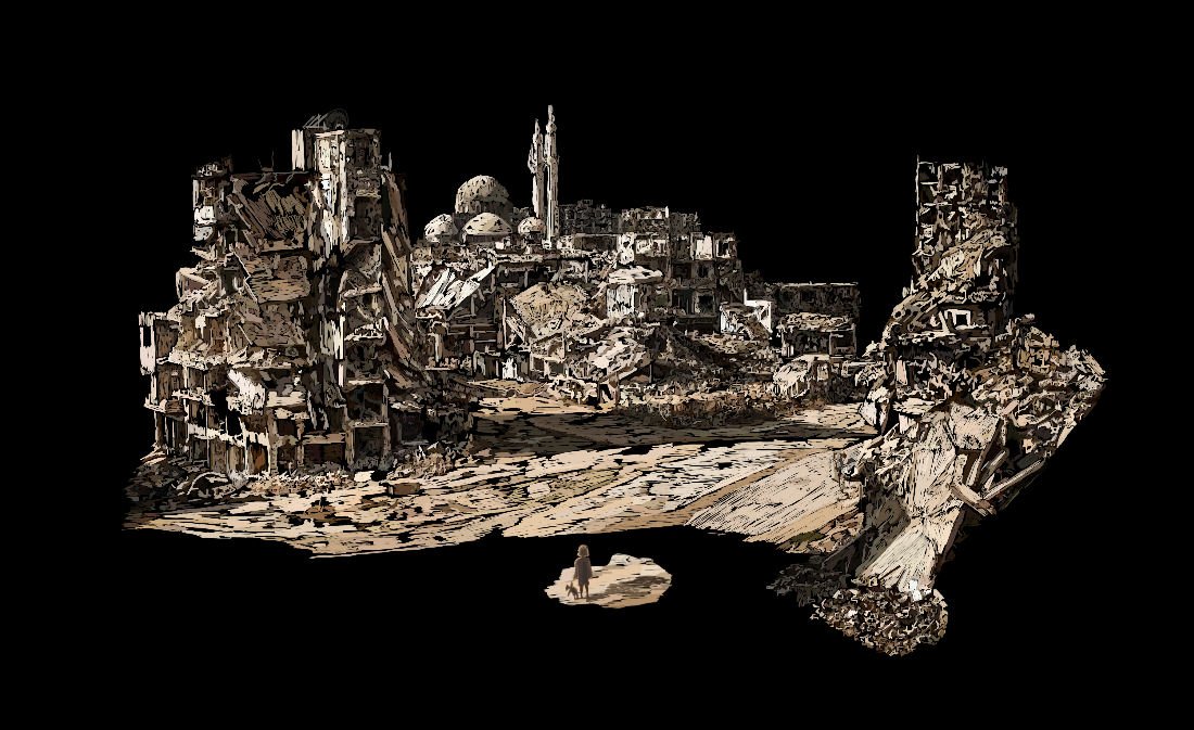 Die aus drei Bildern bestehende Reihe "Verlorene Kindheit" beschäftigt sich mit dem Leid der Kinder im Krieg der Erwachsenen, was durch den Teddy symbolisiert wird.